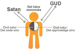 Overalt i denne falne verden, der Satan regjerer som dens falske overhode, har Gud hele tiden investert seg for å skille det gode fra det onde. Av den grunn er menneskehetens historie sterkt preget av konflikter mellom det gode og det onde. Det falne mennesket ble i sitt sinn ett med Satan og begår syndige gjerninger med sin kropp. Men mennesket har også fortsatt sitt opprinnelige sinn, skapt av Gud, og dét er alltid rettet mot Gud. Mennesket befinner seg derfor uunngåelig i en mellomposisjon. På den ene siden forsøker Satan desperat å beholde mennesket under sitt onde herredømme, mens Gud derimot gjør sitt beste for å få mennesket på sin side, under sitt gode herredømme. Således er det hele tiden en kamp der både det gode og det onde kjemper for å få mennesket på sin side. Et sant bilde av menneskehetens historie må derfor beskrive hvordan det gode og det onde er i konflikt med hverandre i denne verden.