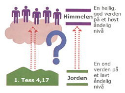 I Bibelen betyr himmelen vanligvis «en verden på et høyt åndelig nivå, som er hellig og sann og under det godes herredømme». Jorden derimot betyr det motsatte: «en verden full av smerte, lidelse, frykt og synd, under det ondes herredømme». Når vi for eksempel sier: «Fader vår, du som er i himmelen» (Matt 6,9) og ber til den allestedsnærværende Gud, så betyr ikke det at han befinner seg i luften, men at han er på et hellig og åndelig sett høyt sted. «Å møte Herren i luften» vil derfor ikke si at troende vil bli fysisk løftet opp i verdensrommet. Det henviser i stedet til hellige troende som er i ferd med å nå et høyere åndelig nivå. Disse troende vil følge, tjene og støtte Gjenkomstens Herre i en verden under Guds herredømme fordi han vil gjenopprette Guds rike på jorden, etter at han er kommet tilbake.