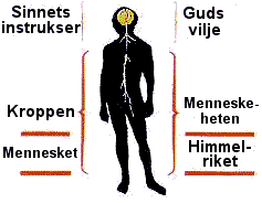 Guds rike ligner en person som har oppnådd fullkommenhet. Menneskesinnets instrukser blir sendt til hele kroppen gjennom sentralnervesystemet. Kroppens forskjellige deler, enten de er i bevegelse eller i ro, fokuseres derfor på én hensikt, helhetens hensikt. I Guds rike vil på samme måte Guds vilje bli formidlet på en naturlig måte til alle hans barn gjennom Sanne foreldre [21], menneskehetens sanne forfedre [22]. Slik vil alle mennesker og ting, enten de er i bevegelse eller i ro, bli en harmonisk verden i samsvar med Guds ideal. På samme måte som ingen del av kroppen vil gjøre opprør mot sentralnervesystemet, vil heller ikke det fullkomne mennesket føle fiendskap overfor, eller gjøre opprør mot, Guds kjærlighetsherredømme. En slik verden vil være helt fri for konflikter og kriminalitet.