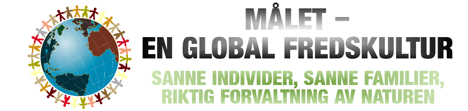 Mål: Himmelriket på jorden. En harmonisk verdensfamilie, der alle kan oppleve fred, trygghet, frihet og kjærlighet.